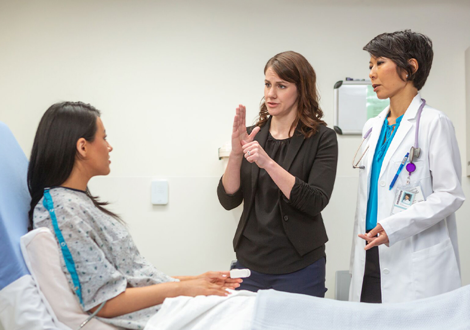 Medical interpreters in healthcare delivery facilitate communication between patients who do not speak English or are hearing impaired.